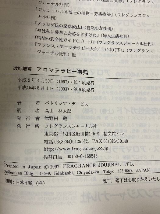 アロマテラピー事典 改訂増補 フレグランスジャーナル社 パトリシア デービス