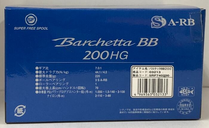 1 バルケッタ Barchetta BB BB200HG SHIMANO シマノ 右 クイックラッチ スーパーフリースプール LEDバックライト ベイトリール