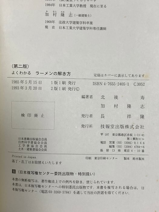 タイトル:よくわかるラ-メンの解き方 (実戦的生きた建物の構造 1) 技報堂出版 加村 隆志