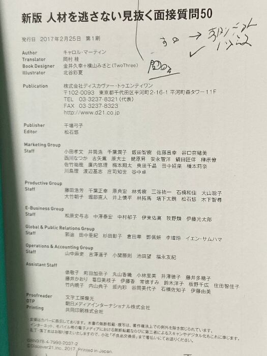 タイトル:[新版]人材を逃さない見抜く面接質問50 ディスカヴァー・トゥエンティワン キャロル・マーティン
