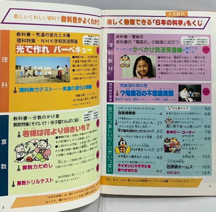 (14) 6年の科学 4月教材 理科・算数 1982年発行 学習研究社 気温の変化と太陽 分数のかけ算