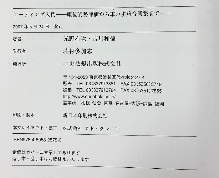 タイトル:シ-ティング入門: 座位姿勢評価から車いす適合調整まで 中央法規出版 光野 有次