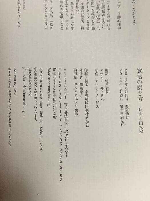 タイトル:覚悟の磨き方 超訳 吉田松陰 サンクチュアリ出版 鶴巻謙介