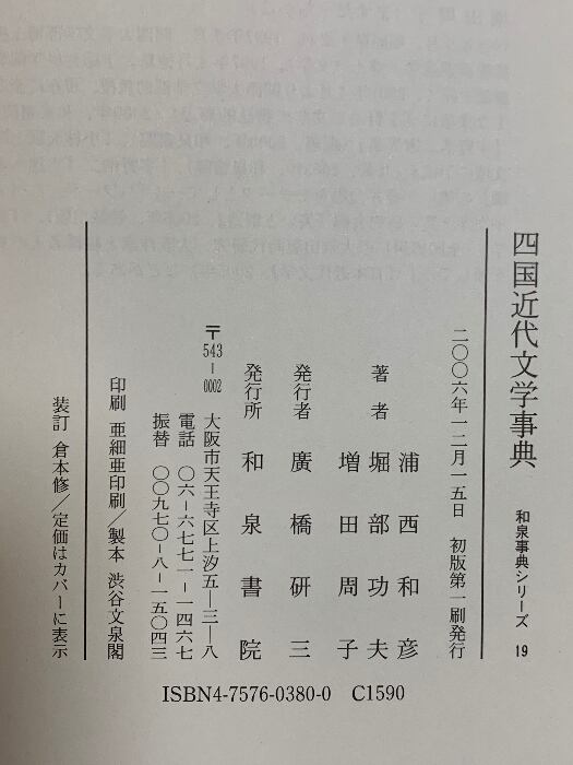 タイトル:四国近代文学事典 和泉書院 浦西 和彦