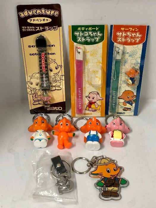 7 サトちゃん・サトコちゃん グッズ まとめ 佐藤製薬 お面 フィギュア キーホルダー 絵本 塗り絵 メモ帳 マウスパッド ストラップ タオル 他