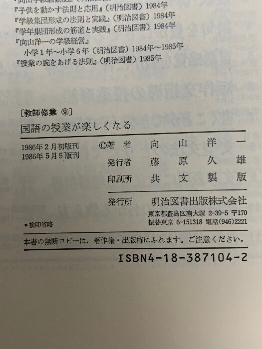 教師修業 9 国語の授業が楽しくなる 明治図書出版 向山 洋一