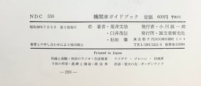 タイトル:機関車ガイドブック 誠文堂新光社 著:荒井文治・白井茂信・杉田肇 昭和38年