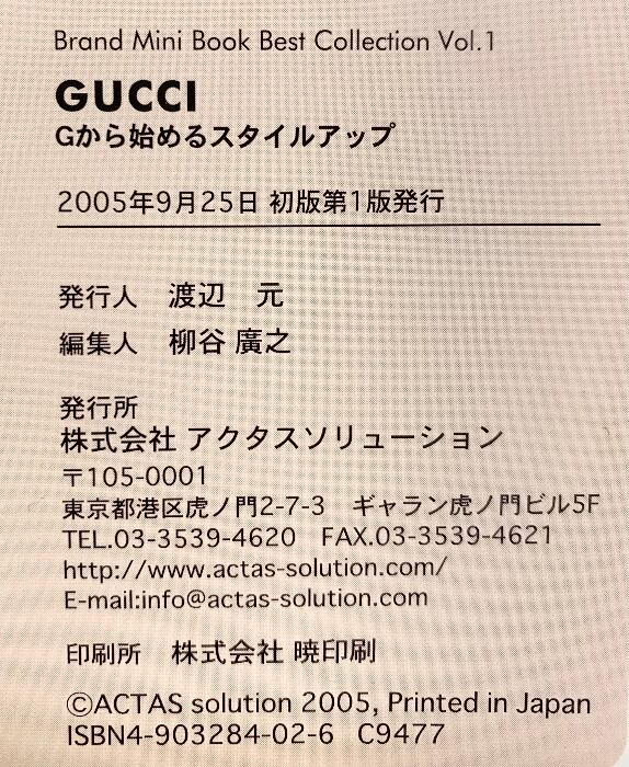 タイトル:GUCCI Gからはじめるスタイルアップ (Brand Mini Book Best Collection) 株式会社アクタスソリューション 渡辺 元
