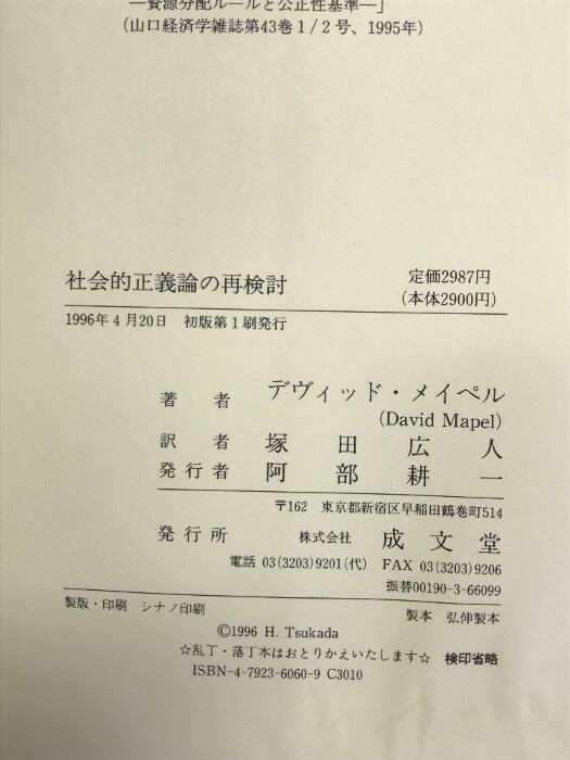 社会的正義論の再検討 成文堂 デヴィッド メイペル