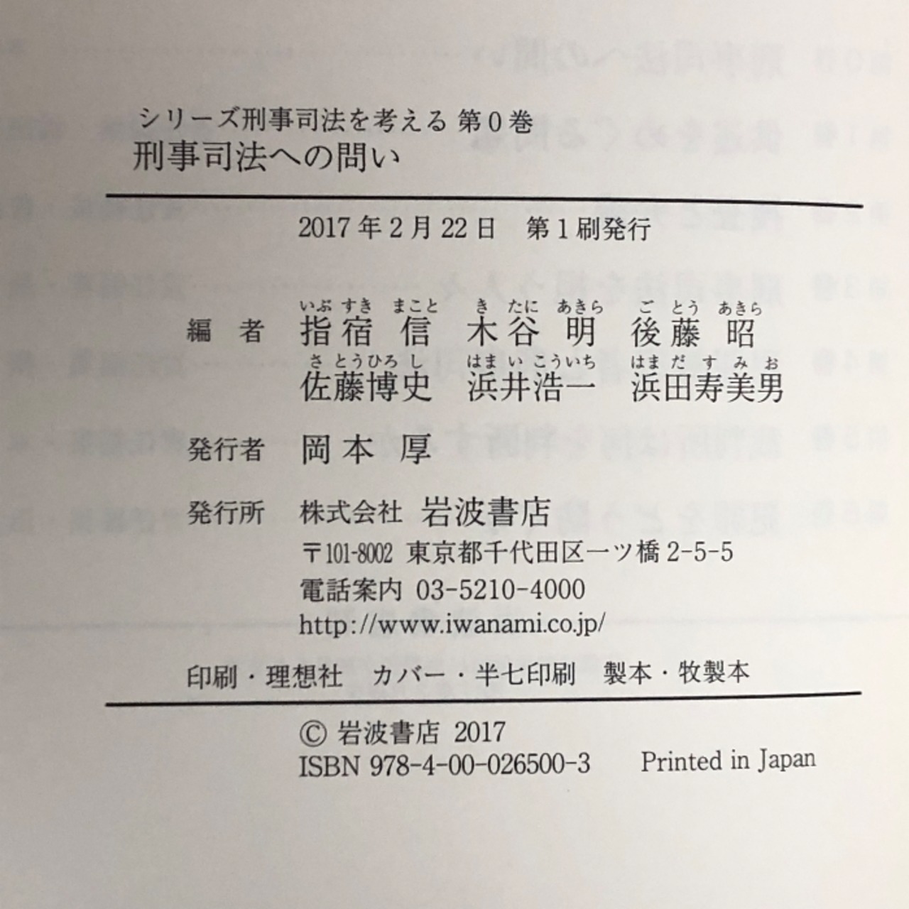 タイトル:刑事司法への問い (シリーズ 刑事司法を考える 第0巻) 岩波書店 指宿 信