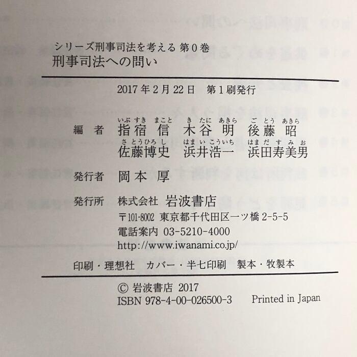 刑事司法への問い (シリーズ 刑事司法を考える 第0巻) 岩波書店 指宿 信