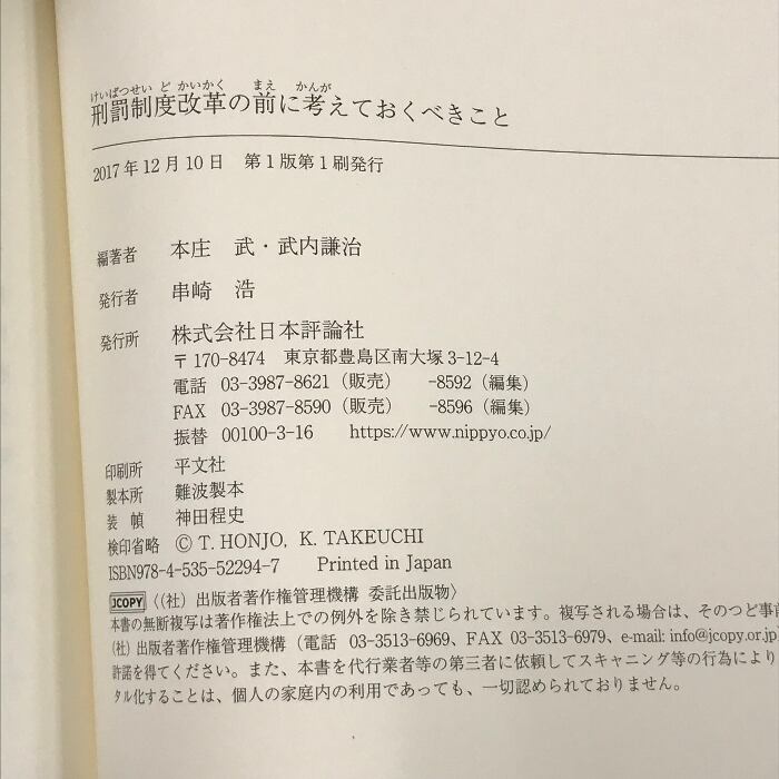 タイトル:刑罰制度改革の前に考えておくべきこと 日本評論社 武内 謙治
