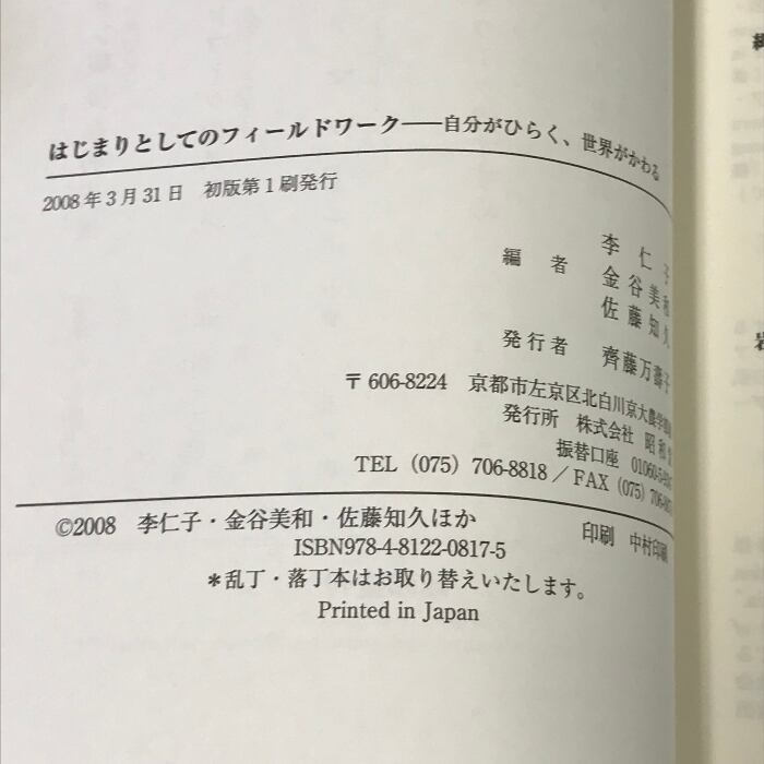 タイトル:はじまりとしてのフィールドワーク: 自分がひらく、世界がかわる 昭和堂 李 仁子