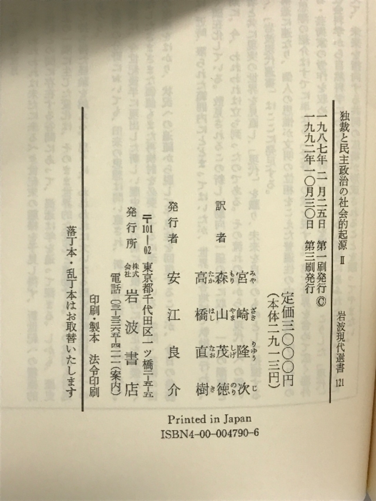 独裁と民主政治の社会的起源 2―近代世界形成過程における領主と農民 (岩波現代選書 121) 岩波書店 バリントン ムーア,Jr.