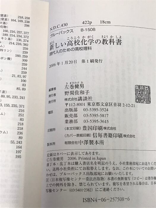 新しい高校化学の教科書 現代人のための高校理科 (ブルーバックス) 講談社 左巻 健男