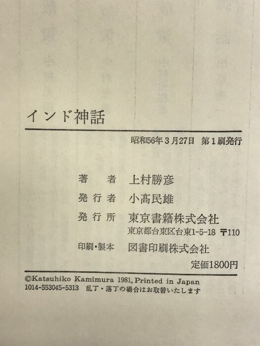 タイトル:インド神話 東京書籍 上村勝彦