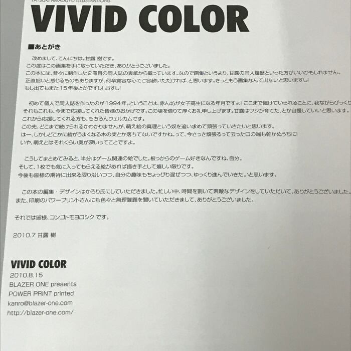タイトル:VIVID COLOR 甘露樹画集 1995-2010 TATSUKI AMADUYU ILLUSTRATIONS BLAZER ONE
