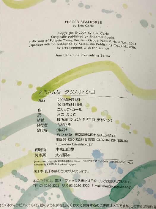 タイトル:とうさんはタツノオトシゴ 偕成社 エリック カール さの ようこ