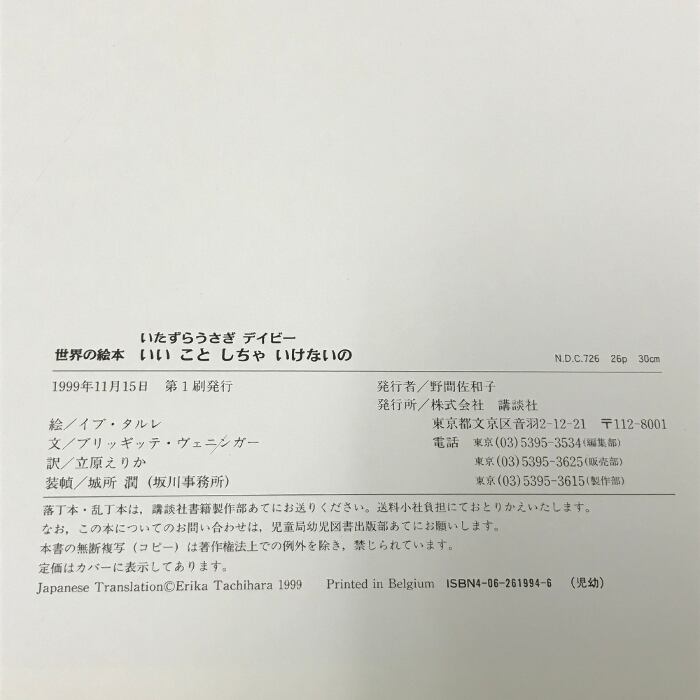 タイトル:いたずらうさぎデイビーいいことしちゃいけないの (世界の絵本) 講談社 ブリギッテ ヴェニンガー