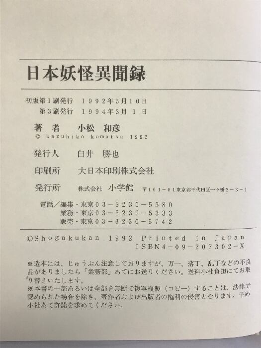 タイトル:日本妖怪異聞録 小学館 小松 和彦