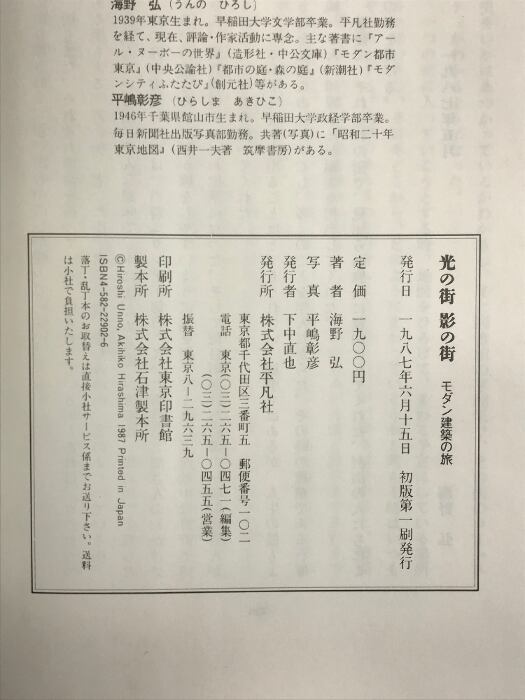 光の街影の街―モダン建築の旅 平凡社 海野 弘