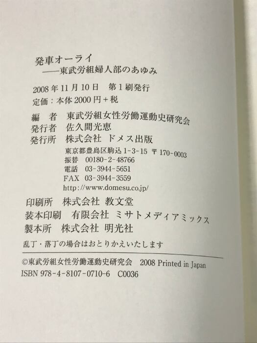 タイトル:発車オーライ 東武労組婦人部のあゆみ ドメス出版 東武労組女性労働運動史研究会