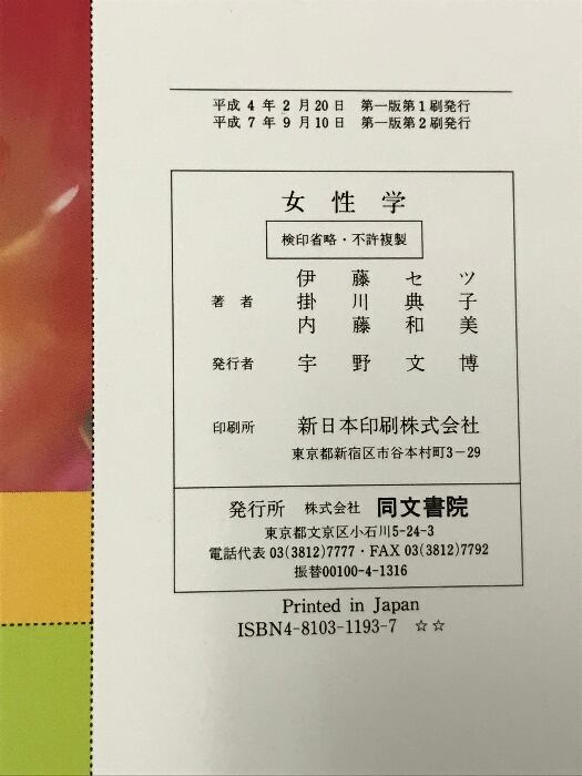 タイトル:女性学: 入門から実践・応用まで 同文書院 伊藤 セツ
