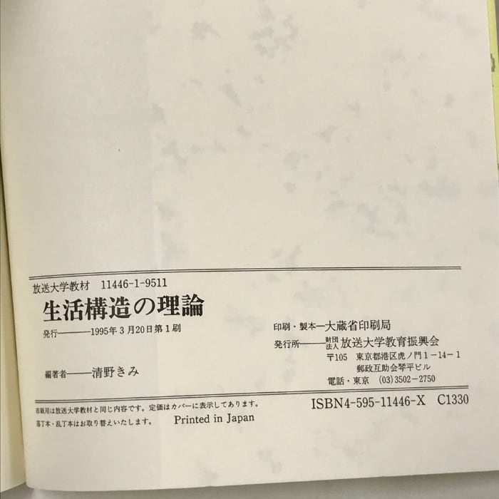 生活構造の理論 (放送大学教材 4004) 放送大学教育振興会 清野 きみ