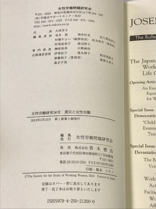 女性労働研究 2012年 56号 震災と女性労働 問われるジェンダー平等と暮らし 青木書店 女性労働問題研究会