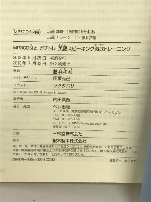 タイトル:MP3CD付き ガチトレ 英語スピーキング徹底トレーニング ベレ出版 藤井 拓哉