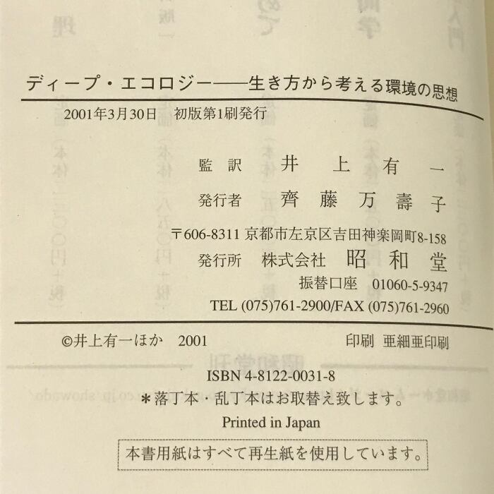 タイトル:ディープ・エコロジー 生き方から考える環境の思想 昭和堂 アラン ドレングソン