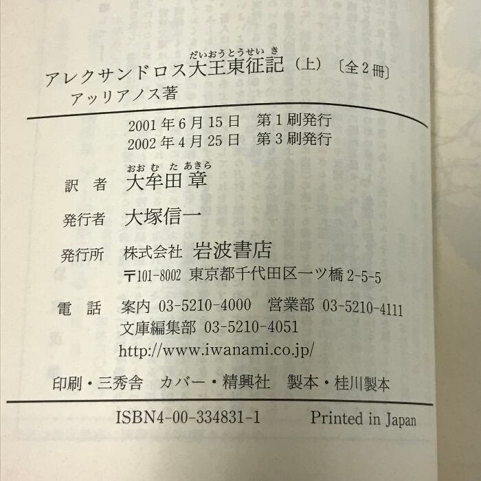 アレクサンドロス大王東征記 上: 付インド誌 (岩波文庫 青 483-1) 岩波書店 フラウィオス アッリアノス