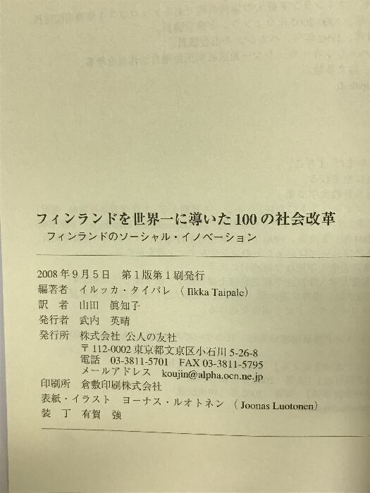 タイトル:フィンランドを世界一に導いた100の社会改革: フィンランドのソーシャル・イノベーション 公人の友社 イルッカ タイパレ