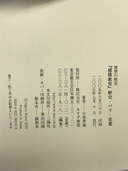 タイトル:『感情教育』歴史・パリ・恋愛 (理想の教室) みすず書房 小倉 孝誠