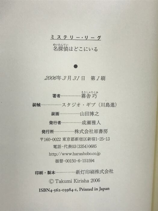タイトル:名探偵はどこにいる (ミステリー・リーグ) 原書房 霧舎 巧