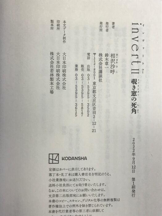 タイトル:invert II 覗き窓の死角 講談社 相沢 沙呼