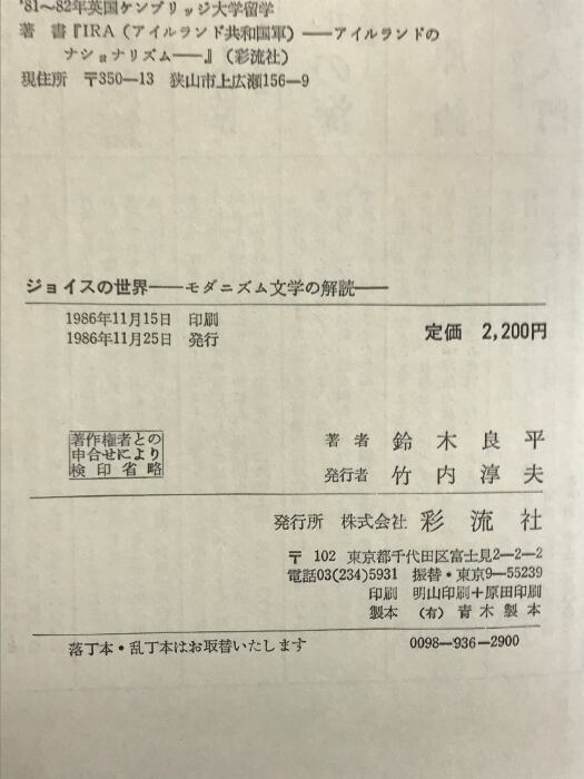 タイトル:ジョイスの世界: モダニズム文学の解読 彩流社 鈴木 良平