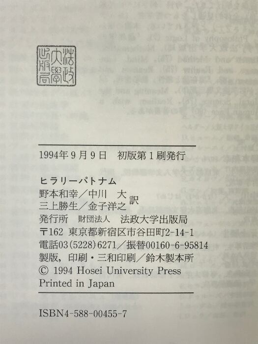 理性・真理・歴史: 内在的実在論の展開 (叢書・ウニベルシタス 455) 法政大学出版局 ヒラリー パトナム