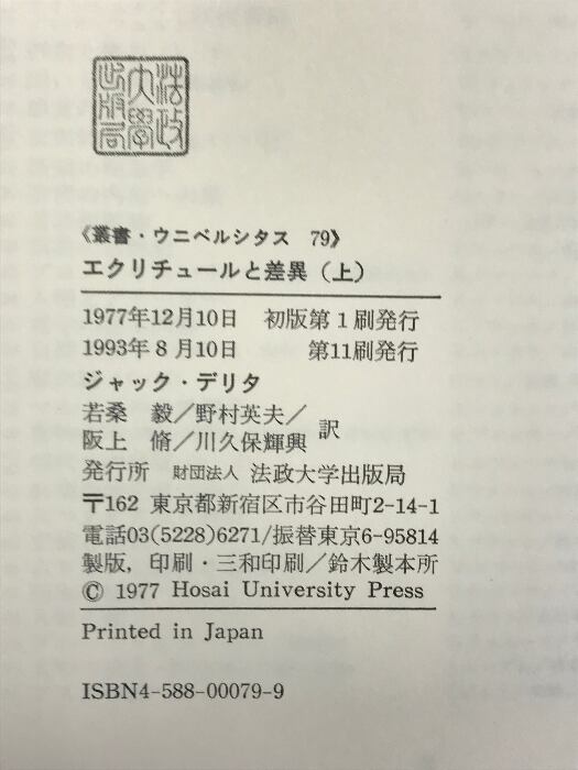 タイトル:エクリチュールと差異 上 (叢書・ウニベルシタス) 法政大学出版局 ジャック デリダ