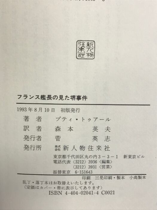 タイトル:フランス艦長の見た堺事件 KADOKAWA(新人物往来社) ベルガス・デュ プティ・トゥアール