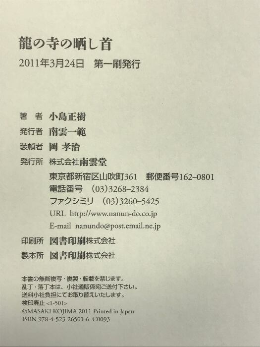 タイトル:龍の寺の晒し首 (本格ミステリー・ワールド・スペシャル) 南雲堂 小島正樹