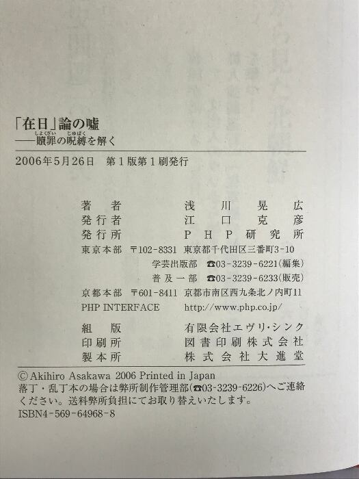 タイトル:「在日」論の嘘: 贖罪の呪縛を解く PHP研究所 浅川 晃広