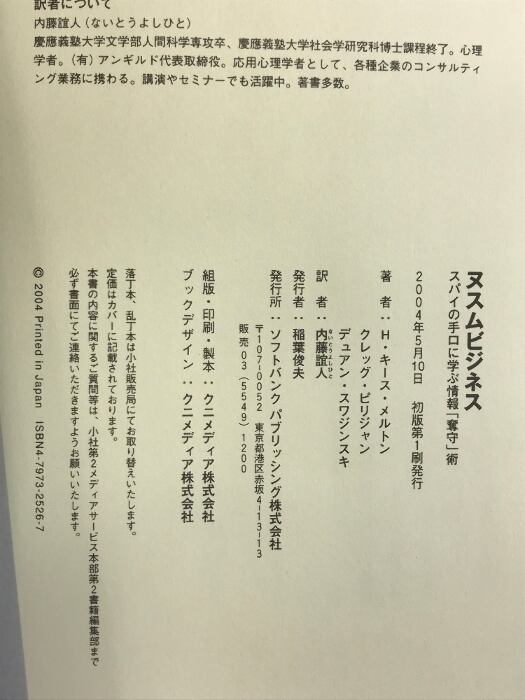 ヌスムビジネス―スパイの手口に学ぶ情報「奪取」術 ソフトバンククリエイティブ H.キース メルトン