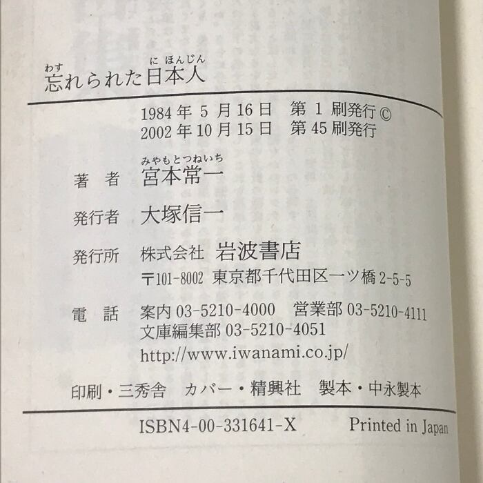 忘れられた日本人 (岩波文庫 青 164-1) 岩波書店 宮本 常一