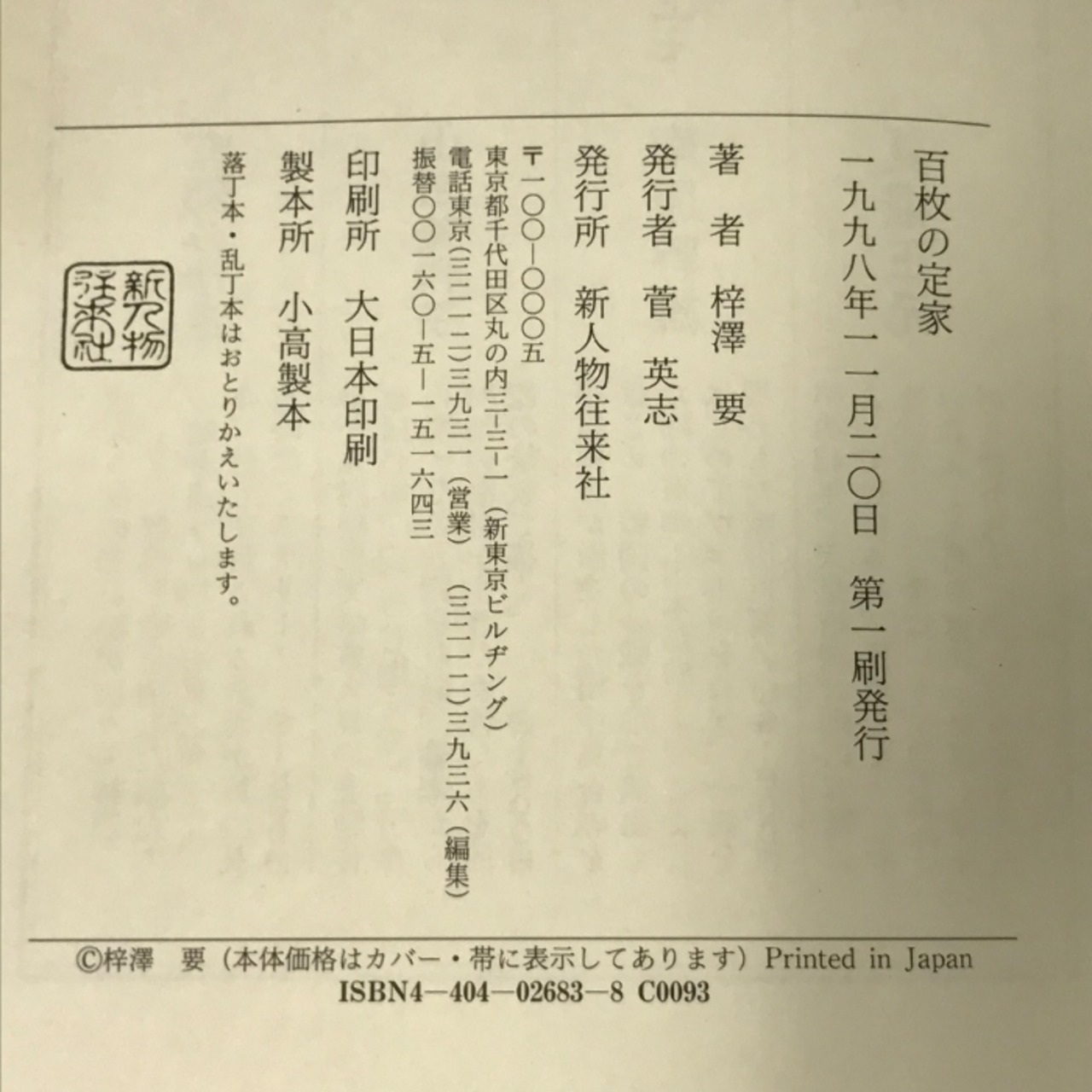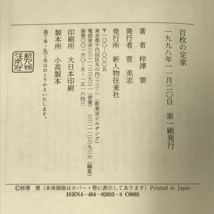 タイトル:百枚の定家 新人物往来社 梓沢 要