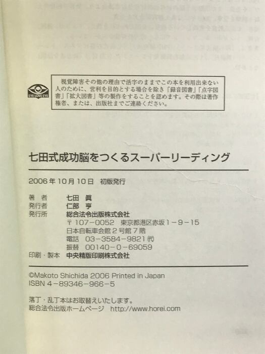七田式成功脳をつくるスーパーリーディング 総合法令出版 七田 眞