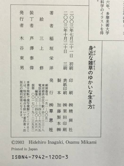 タイトル:身近な雑草のゆかいな生き方 草思社 稲垣 栄洋