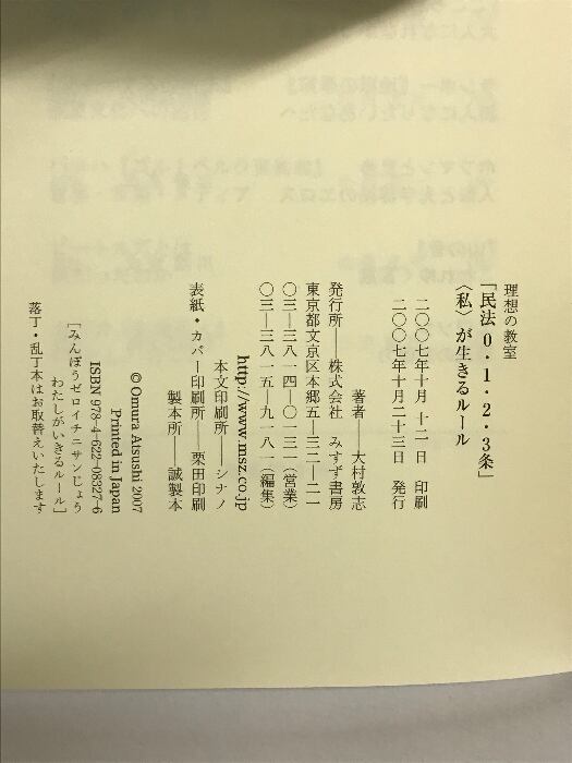 タイトル:「民法0・1・2・3条」〈私〉が生きるルール [理想の教室] みすず書房 大村 敦志