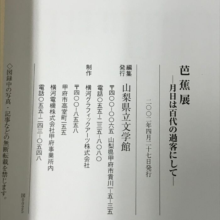 タイトル:図録 芭蕉展 月日は百代の過客にして 山梨県立文学館 2002