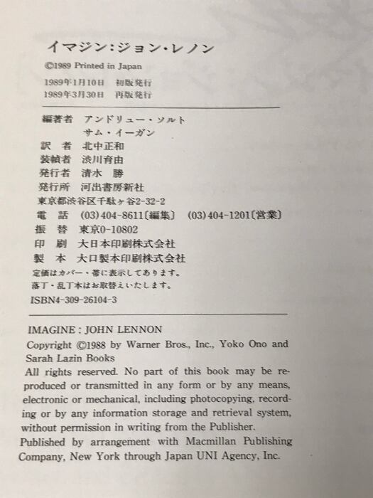 タイトル:イマジン:ジョン・レノン 河出書房新社 アンドリュー ソルト